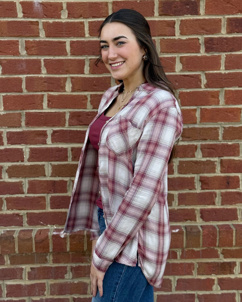 Dallas Plaid Button Up in Wine