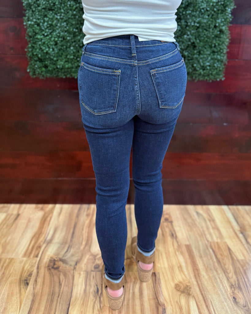 Embrace effortless style and comfort with our Judy Blue High Rise Skinny Fit Dark Wash Jeans. Designed to hug your curves while providing a sleek, polished look, these jeans are a staple for every girl’s wardrobe. Elevate any outfit with its luxurious hand-sanded finish.