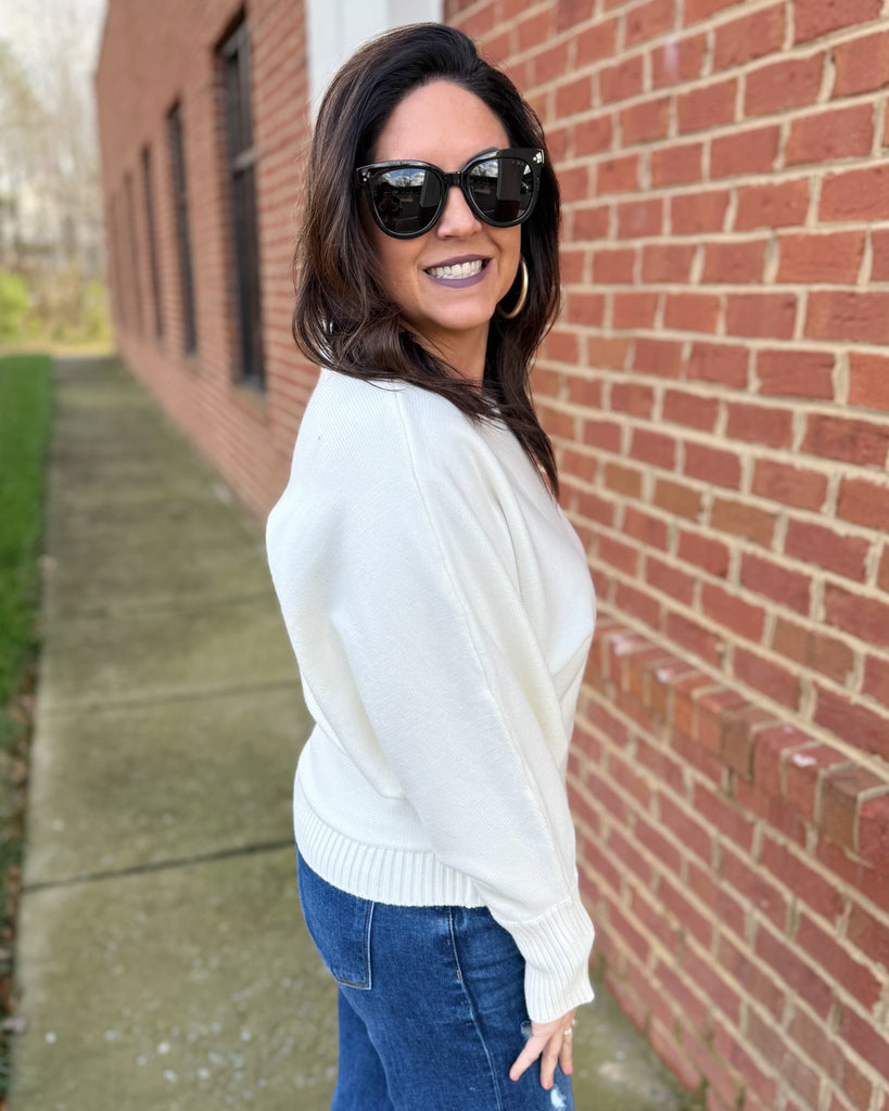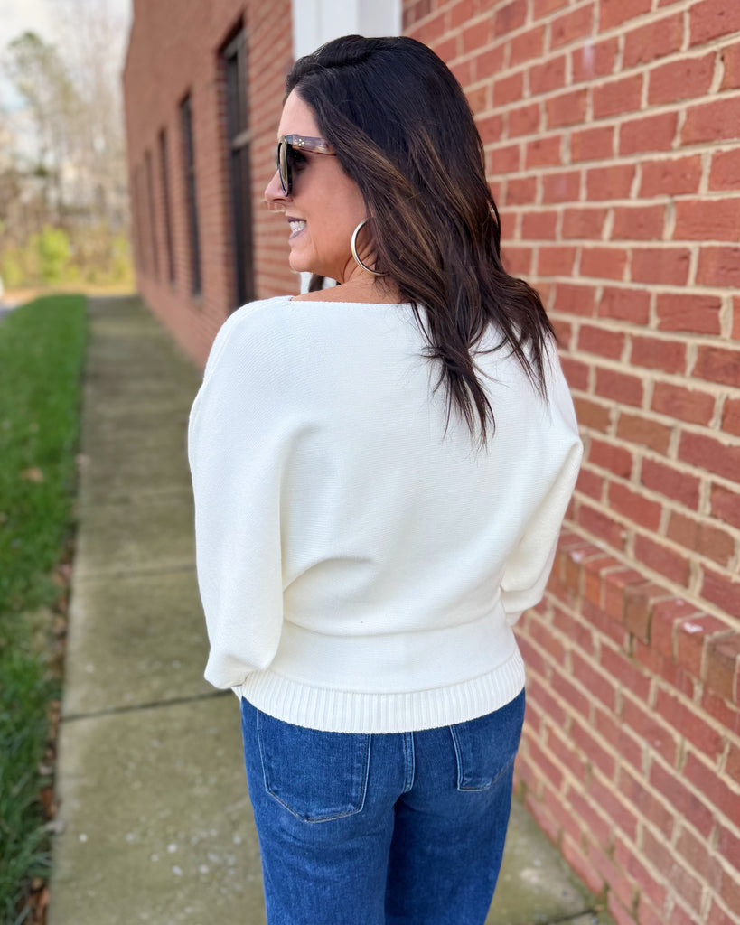 Effortlessly chic and ultra-comfortable, our Callie dolman sweater is a must-have for your everyday wardrobe. Designed with a flattering boat neckline and relaxed batwing sleeves, it offers a modern, laid-back silhouette that drapes beautifully on all body types. The soft knit fabric provides cozy warmth while maintaining a lightweight feel, making it perfect for layering or wearing solo. The classic cream color makes it ideal for pairing with denim, skirts, or tailored pants for a polished yet relaxed finish.