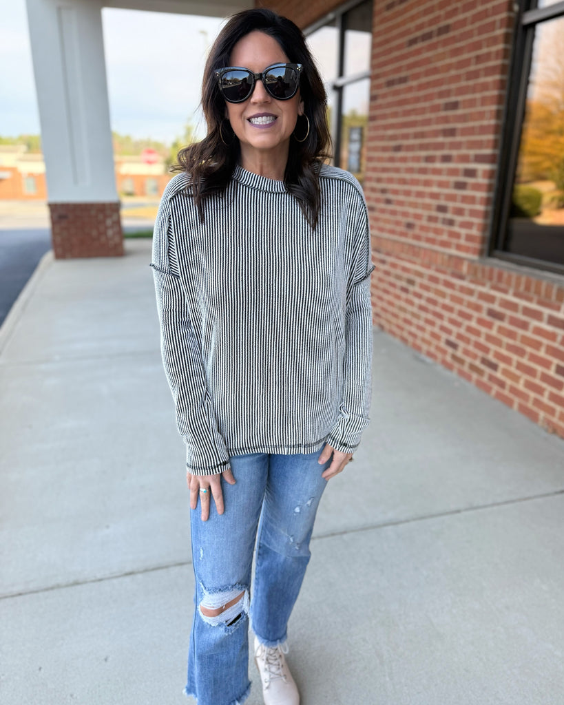 Elevate your everyday style with our Tiffany chic raised rib long sleeve top, designed for effortless comfort and modern appeal. Crafted in a soft, textured knit, it features a flattering boat neckline, raw edge detailing, and a relaxed silhouette that drapes beautifully on the body. The raised rib pattern adds subtle dimension, while the long sleeves make it a perfect layering piece for cooler days.