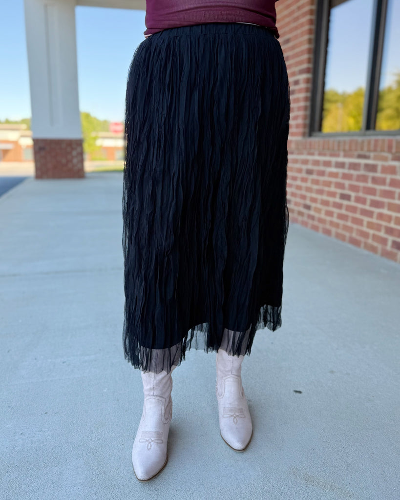 Karter Crinkle Mesh Skirt in Black FINAL SALE