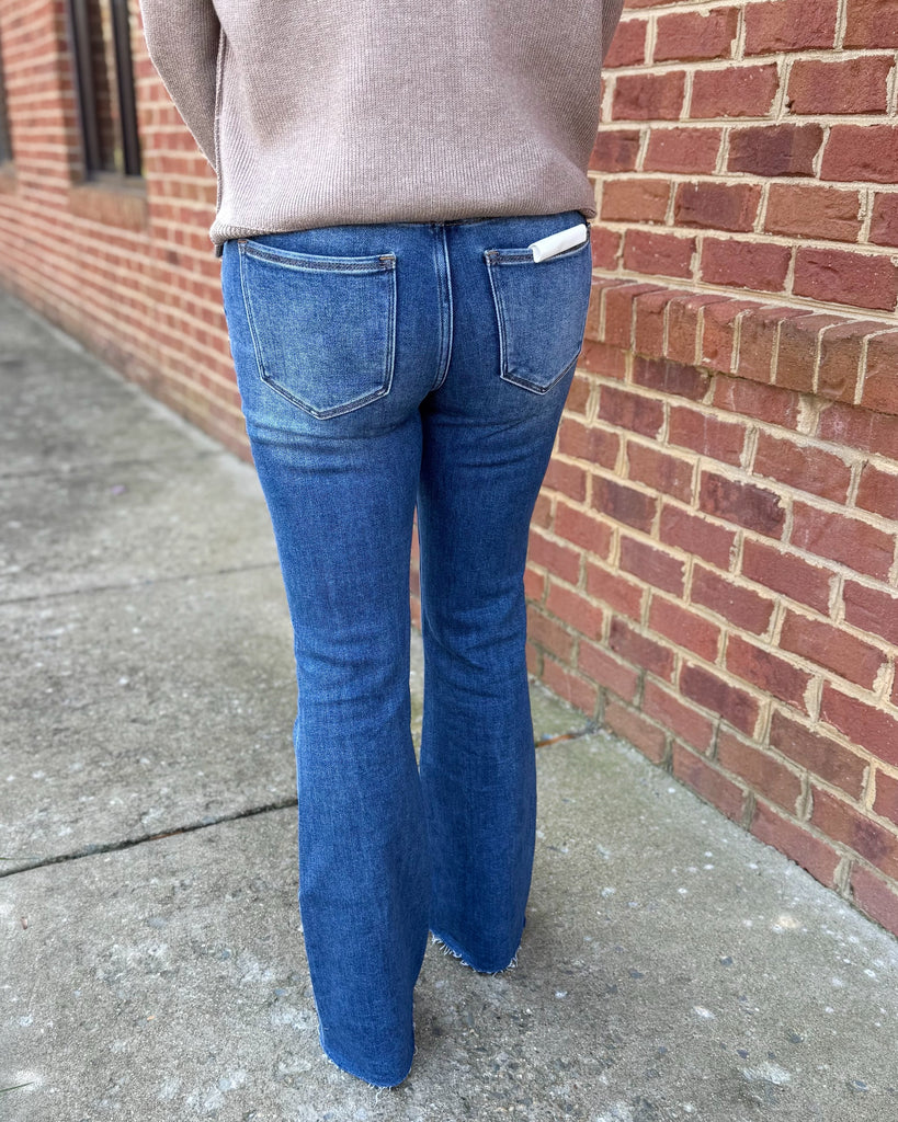 Step into timeless style with our Risen High Rise Flare Jeans, designed to elongate your legs and flatter your silhouette. Crafted with a figure-hugging high-rise waist, they open into a retro-inspired flare that adds movement and charm to every step. The raw cut hem gives them an effortlessly cool, lived-in finish—perfect for pairing with boots, sneakers, or heels. Whether dressed up or kept casual, these jeans bring a modern edge to a classic shape, making them a versatile staple for your wardrobe.