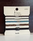 Our HUSTLE set includes five hair tie bracelets in strong colors of black, brown, and blue with matte black details. This set is perfect for guys and girls and will make all who wear it bring a little more hustle to their game. This set is a favorite for guys as well.