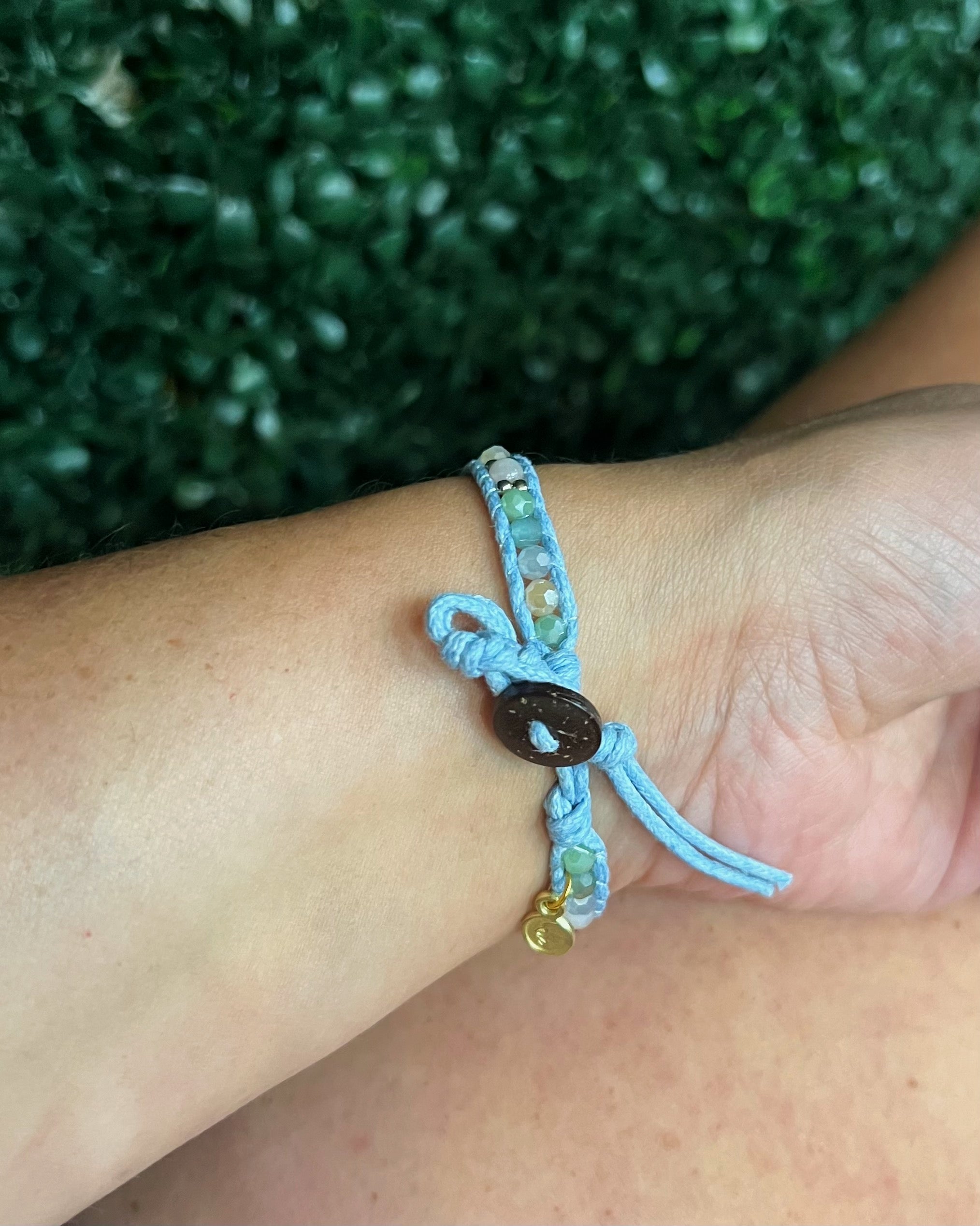 Lotus and Luna bracelets are handcrafted in Thailand by talented female artisans. Bracelets are made with cotton cords, coconut shell clasps, semi-precious stones, and lots of positive vibes.