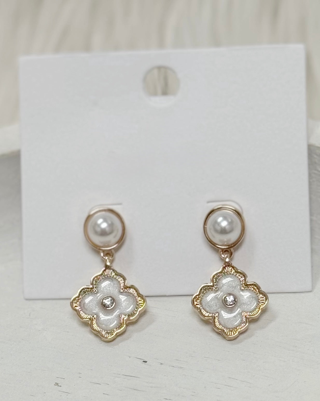 Vintage Clover Pearl Stud Drop Earrings blend timeless elegance with delicate charm. Featuring classic pearl studs accented by graceful clover-shaped drops, these earrings offer a sophisticated, vintage-inspired look.