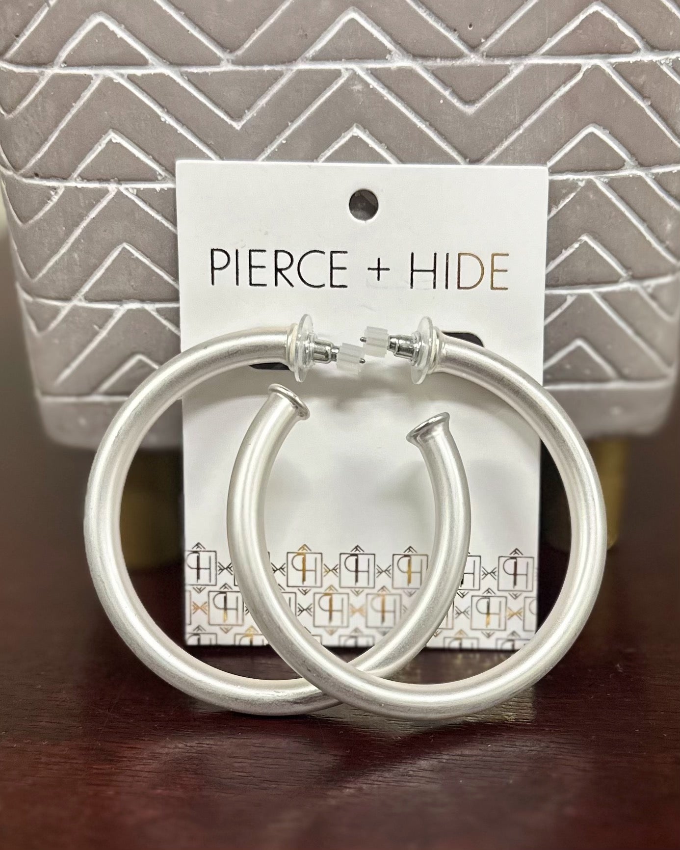 Everyday brushed silver hoop earrings are sure to be a timeless favorite.