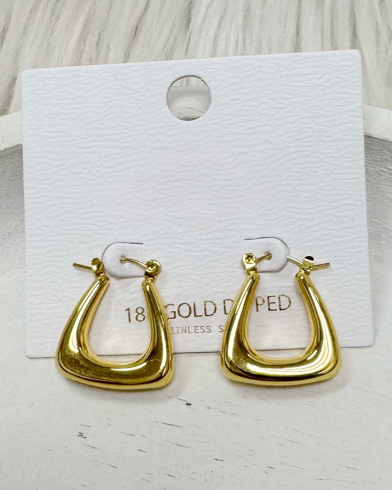 18K Stainless Steel Waterproof Tarnish-Free bubble Triangular Huggie Hoop Earrings, Made from high-quality stainless steel with a luxurious 18K gold finish, these earrings feature a stunning bubble triangular hoop that adds depth and dimension to your look. P
