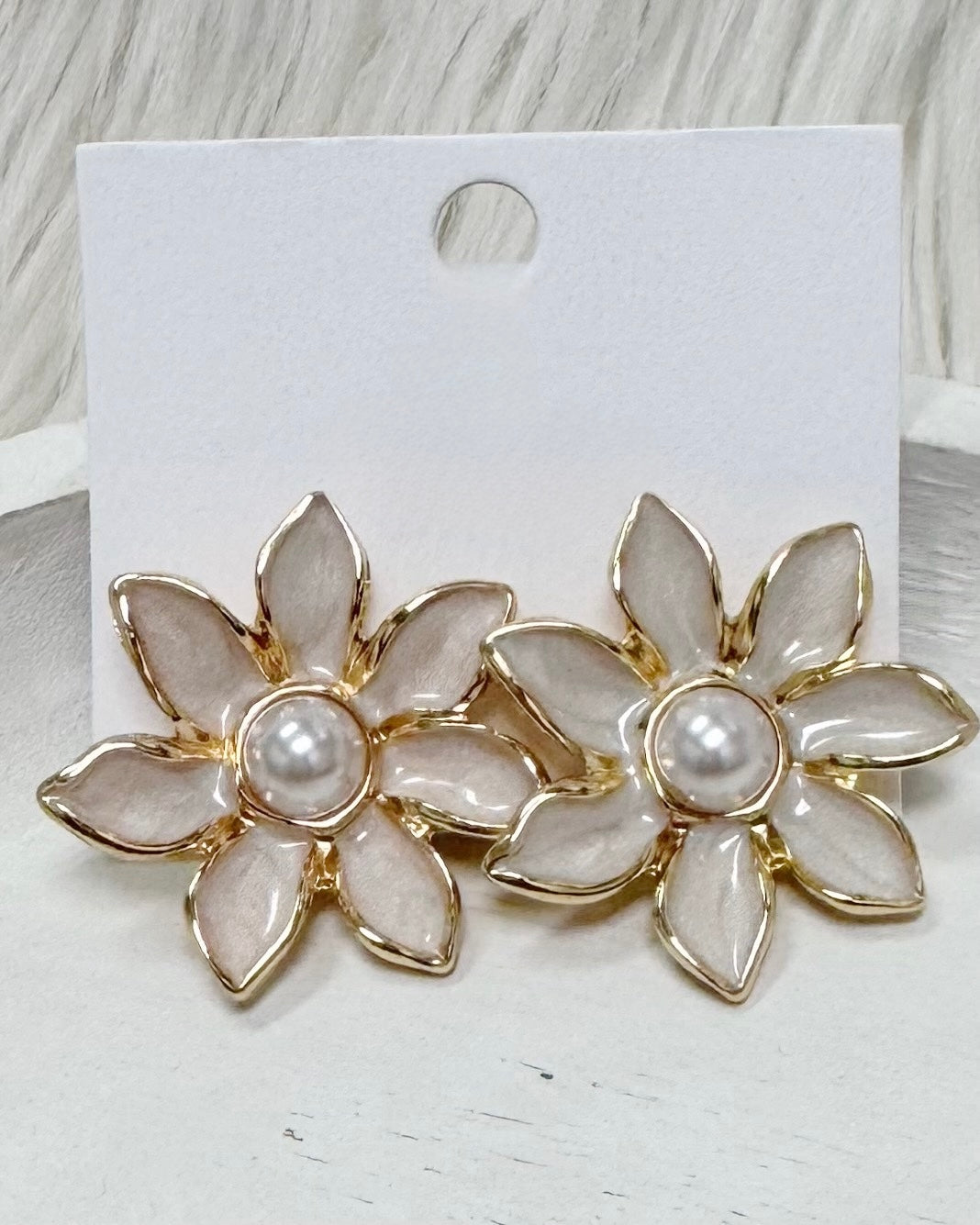 Featuring vibrant epoxy flower designs paired with lustrous pearl accents. These earrings combine playful elegance with modern sophistication.