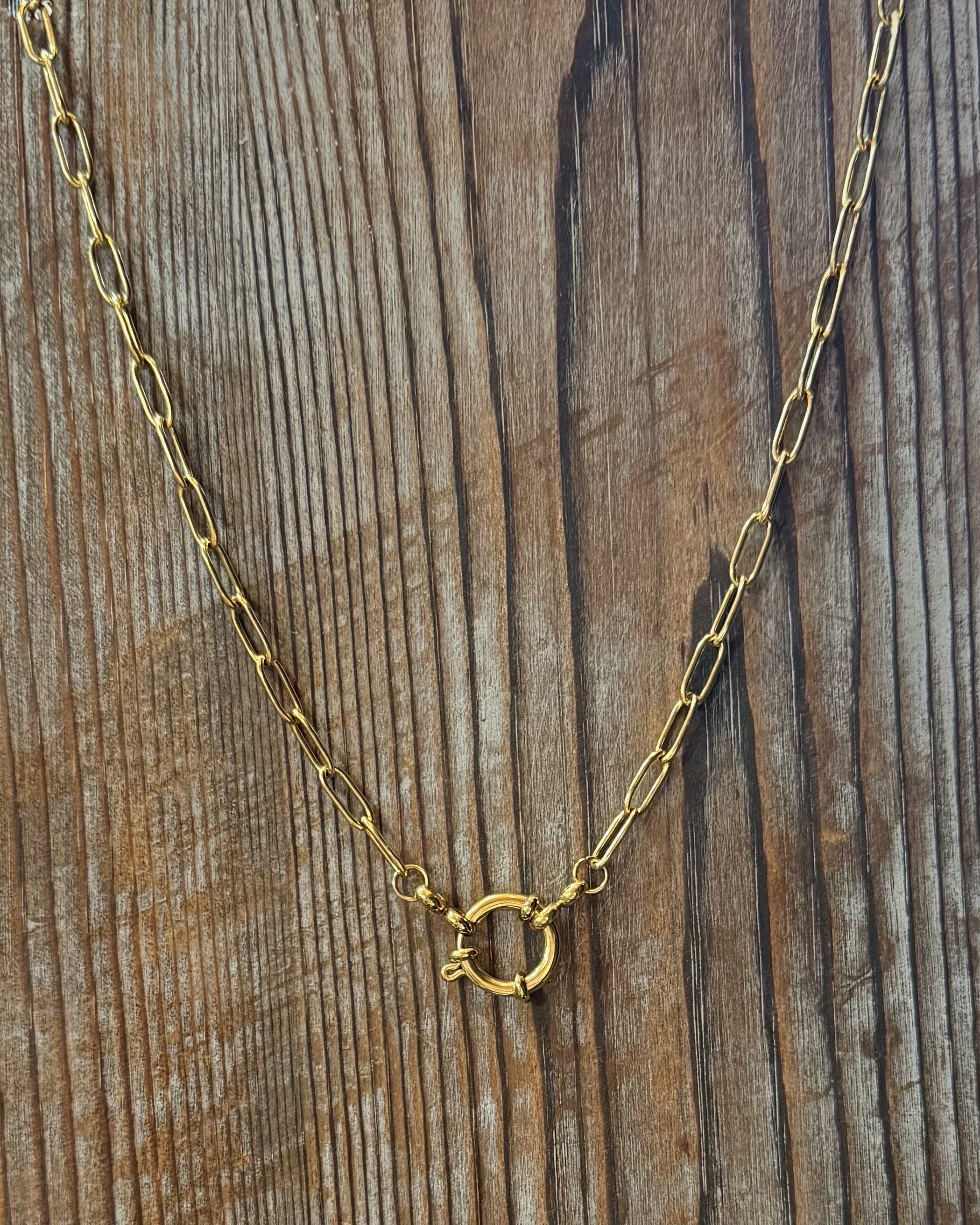 18K Stainless Steel Tarnish-Free Circle with Link Chain Necklace, a sleek and minimalist piece that adds a touch of sophistication to any outfit. This necklace features a polished circle pendant elegantly suspended on a sturdy link chain, crafted from high-quality 18K stainless steel that resists tarnishing for lasting shine.