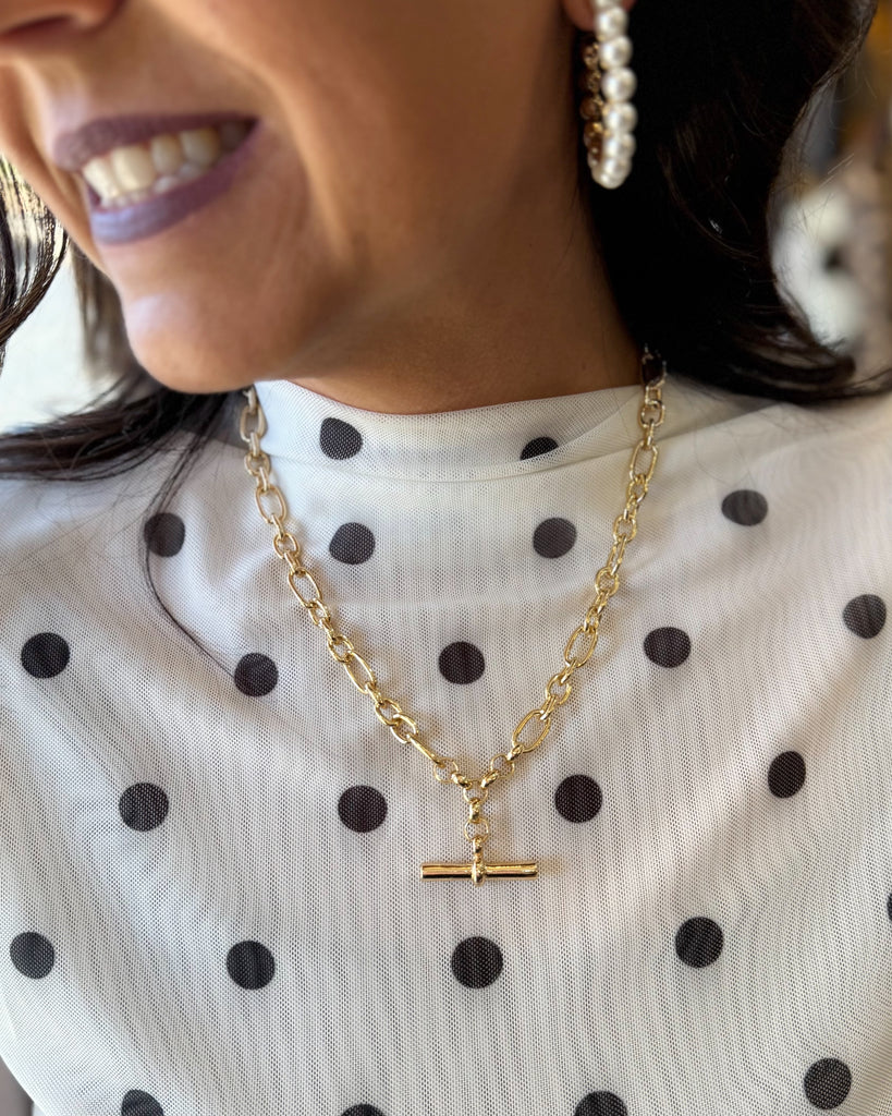 Toggle Bar Pendant Paperclip Chain Necklace in Gold