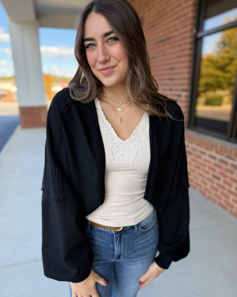 Audrey Cropped Open Cardigan in Black
