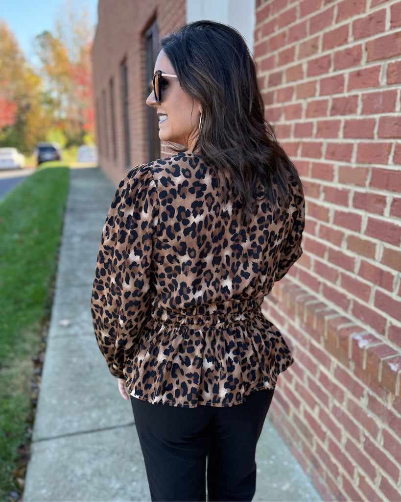 Turn heads in our chic Barrett Long Sleeve Waist Elastic Leopard Print Woven Top. Designed in a bold leopard print, this woven blouse features long sleeves with subtle gathering and an elasticized waist that creates a flattering, blouson silhouette. Lightweight and effortlessly stylish, it’s perfect for pairing with jeans or tailored pants for a polished yet playful look.