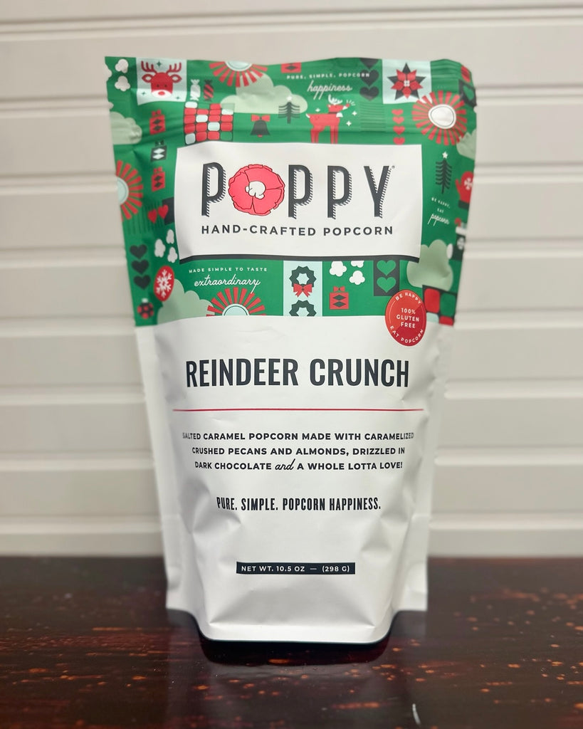 This flavor is sure to get you in the holiday spirit! The Famous Salted Caramel popcorn made with caramelized crushed pecans and almonds, all drizzled with French Broad Chocolate™ craft dark chocolate. Each market bag contains 5 cups of popcorn.