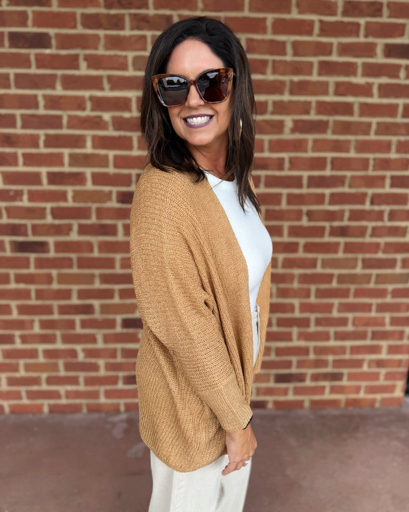 Wrap yourself in effortless style with our Maple Dolman Sleeve Cardigan in rich Dijon. Designed with a relaxed silhouette, this layering piece drapes beautifully for a flattering fit. The dolman sleeves add a modern touch, while the open front makes it easy to slip on and off for all-day versatility. Perfect for pairing with jeans, dresses, or tailored pants, this cardigan brings a warm pop of color and timeless ease to your wardrobe.