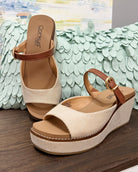 Effortless, versatile, and insanely comfortable — the Corkys Treat Yourself neutral wedge is the definition of a go-with-everything shoe. Featuring a soft woven upper paired with a warm tan footbed and adjustable ankle strap, it gives you that elevated look without sacrificing comfort.