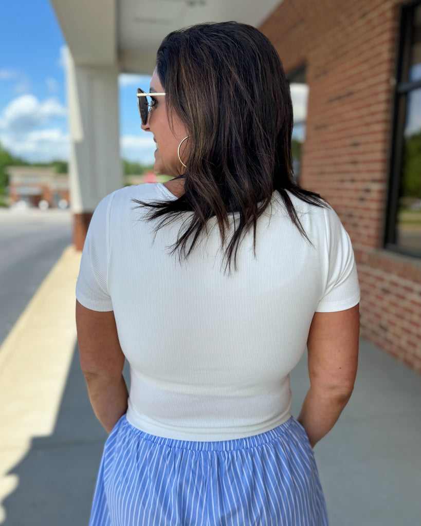 Elevate your everyday essentials with our Jamie Ribbed Padded Crop Knit Top in Off White — the perfect blend of comfort and versatility. Designed with a flattering fitted silhouette and a stretchy ribbed knit texture, this top hugs your shape while allowing easy movement. It features built-in removable bra pads for customizable support, so you can wear it your way. Whether layered or worn solo, it's a go-to piece for lounging, layering, or light activity.