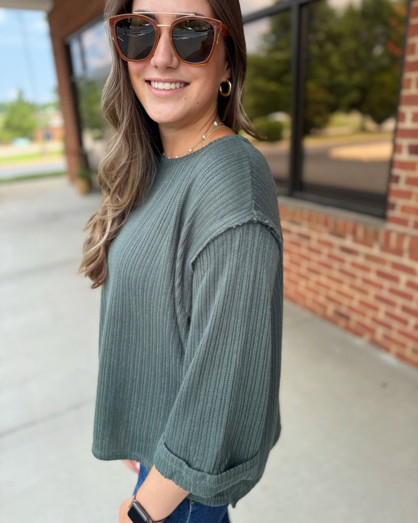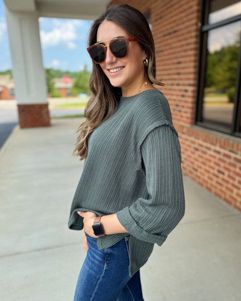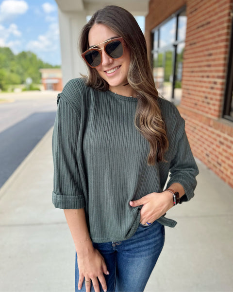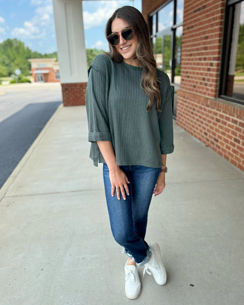 Ryder CURVY 3/4 Sleeve Top in Slate - Madi Savvy Boutique