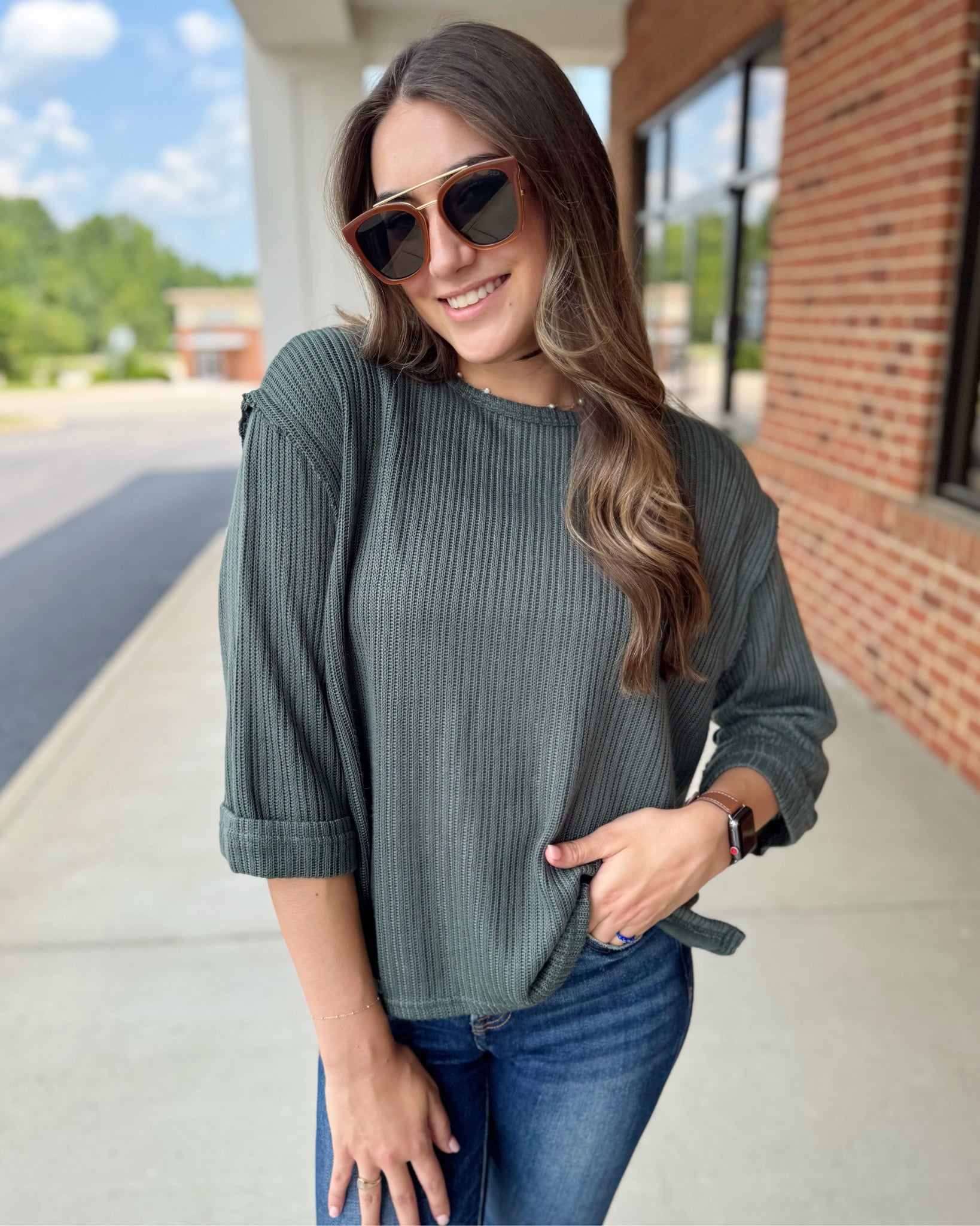Effortlessly stylish, our Ryder 3/4 Folded Sleeve Knit Top in Slate offers a perfect blend of comfort and chic versatility. Crafted from a soft, lightweight knit fabric, this top features relaxed 3/4 sleeves with a subtle folded cuff detail that adds a polished touch. The muted slate hue makes it an easy-to-pair staple for any wardrobe, ideal for layering or wearing solo. With its flattering relaxed fit and breathable feel, this knit top transitions seamlessly from casual days to laid-back evenings.