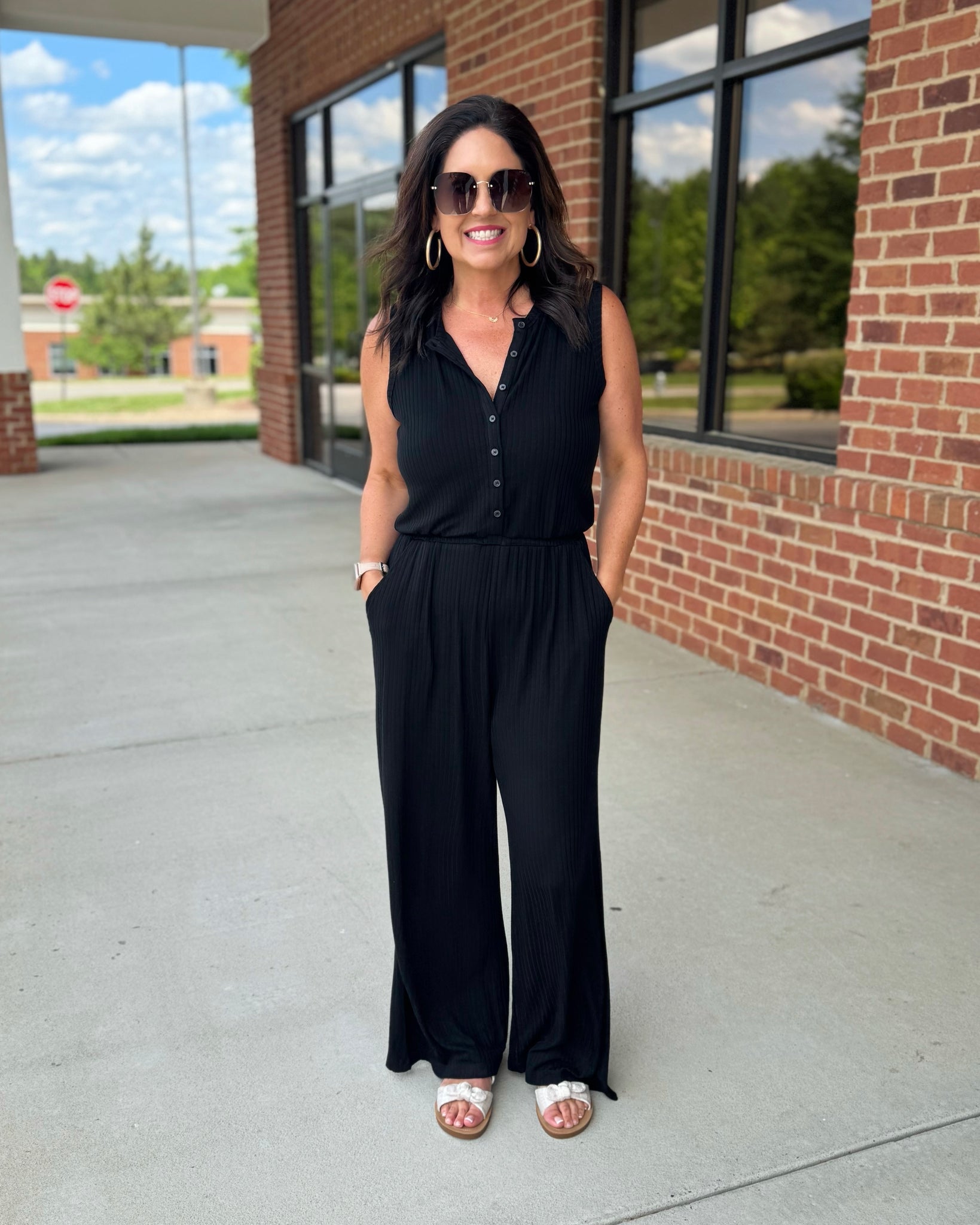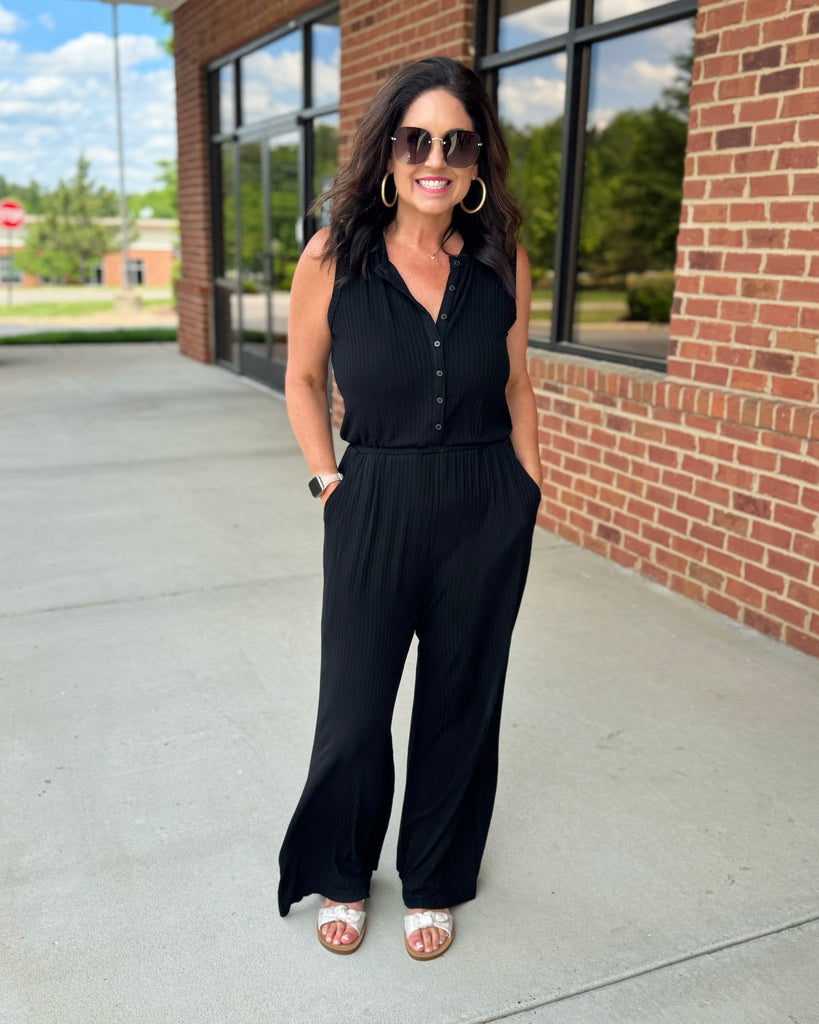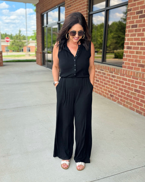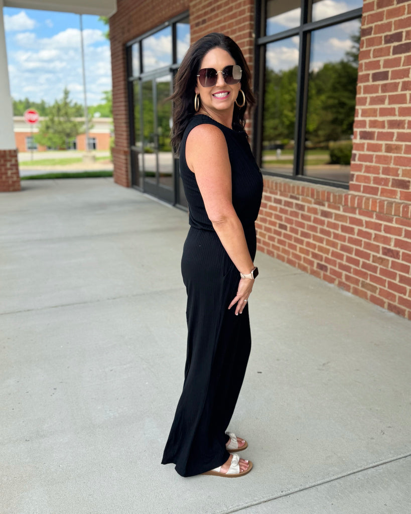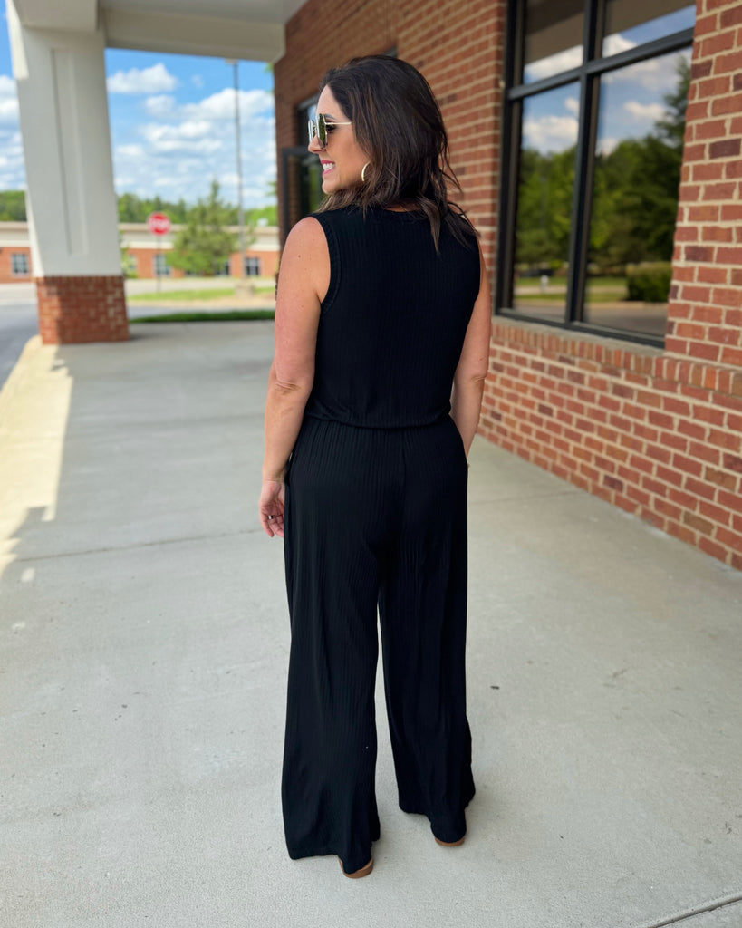 Beth Ribbed Jumpsuit in Black FINAL SALE
