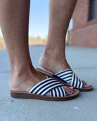 Elevate your warm-weather style with Corky's Dig It Sandal in Navy & Natural Stripes! Featuring a trendy platform sole, cushioned footbed, and easy slip-on design, these sandals offer the perfect blend of comfort and fashion. Whether you're dressing up or keeping it casual, you'll love the effortless vibe they bring to any outfit. Snag your pair today and step up your shoe game!