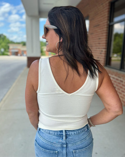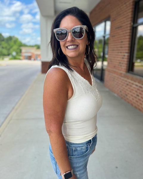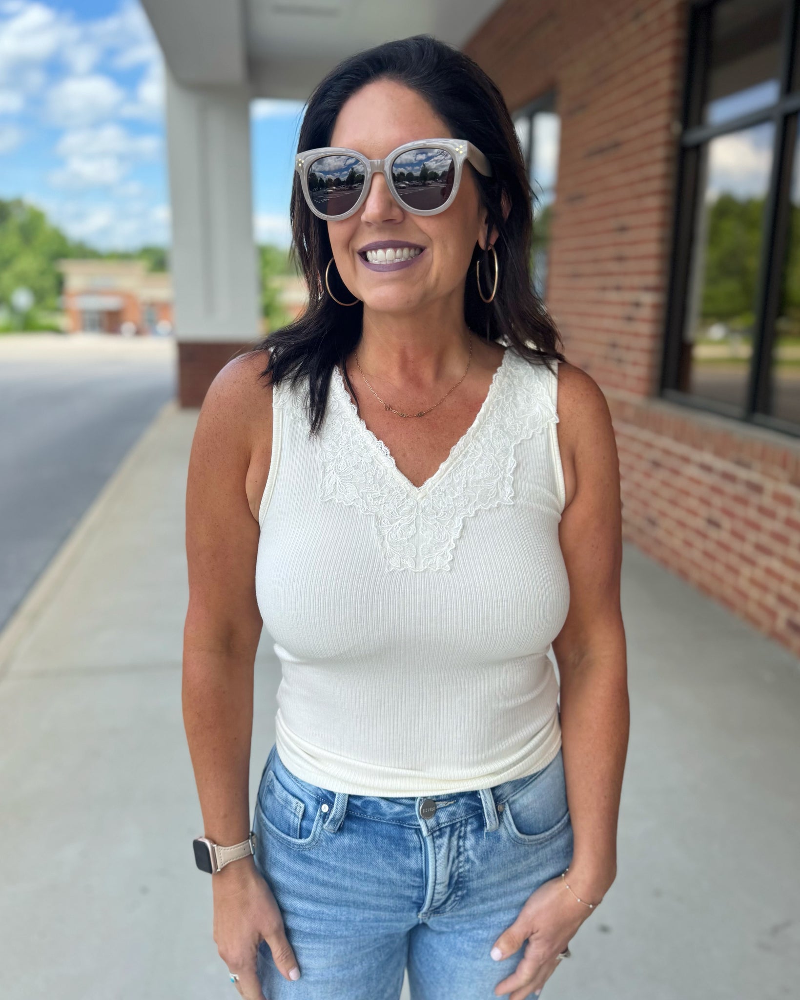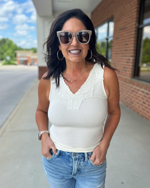 Gayle Lace Trim Tank in Ivory - Madi Savvy Boutique
