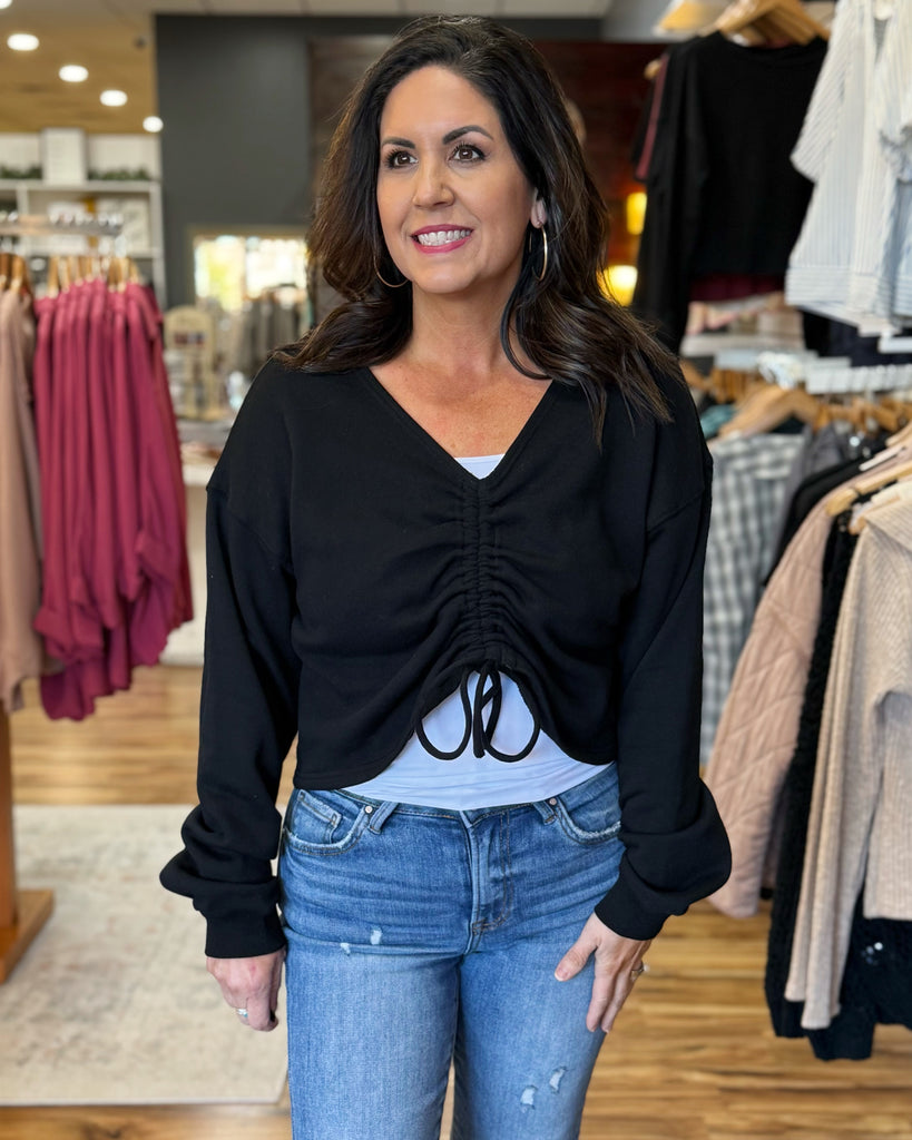Meet your new wear-it-two-ways essential. Our Hadley reversible knit crop top in black is designed with a relaxed, flattering fit and soft ruching that adds just the right touch of texture. Adjustable straps let you customize the fit, while the reversible design gives you two looks in one—perfect for styling from day to night with ease.