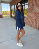 Rita Cotton Shorts in Navy/Natural FINAL SALE