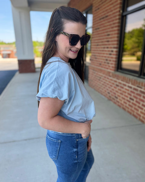 Add a touch of charm to your wardrobe with this Skye Bubble Hem Top in Blue, designed for effortless style and all-day comfort. Featuring bubble short sleeves and a relaxed fit, this top offers a breezy, flattering silhouette that suits any occasion. The lined fabric ensures a smooth and polished look, while the bubble hem creates a subtle, voluminous shape for added flair.