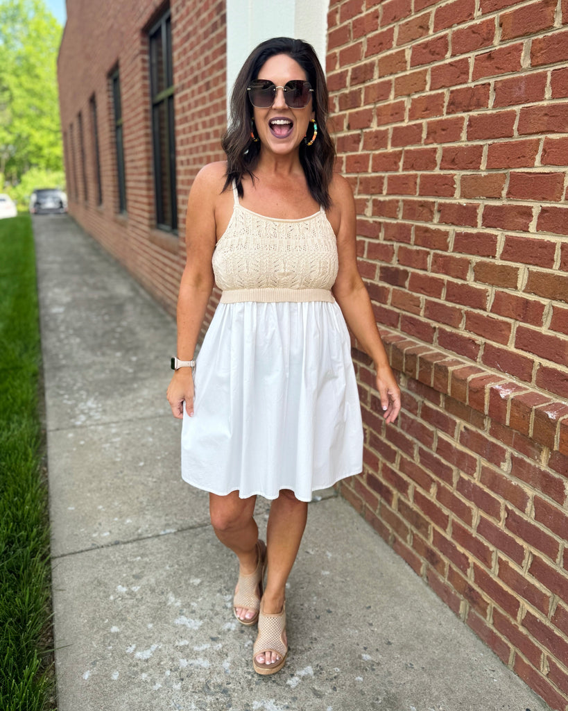 Vienna Crochet Knit Dress in Oatmeal FINAL SALE