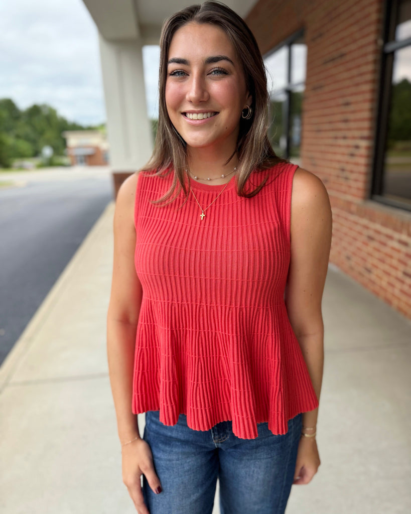 Whitley Ribbed Flare Sweater in Papaya FINAL SALE